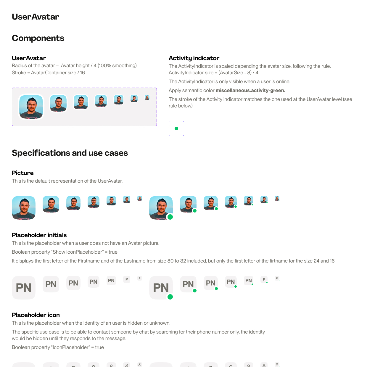 The creation of a robust and ever evolving design system has been at the core of our design strategy at Dailyn as soon as we started increasing the team size and scope of the super-app. We initially documented our design system with Zeroheight; later on, we decided to add all documentation directly on each Figma component files to avoid the maintenance of 2 directories and potentially 2 sources of truths.